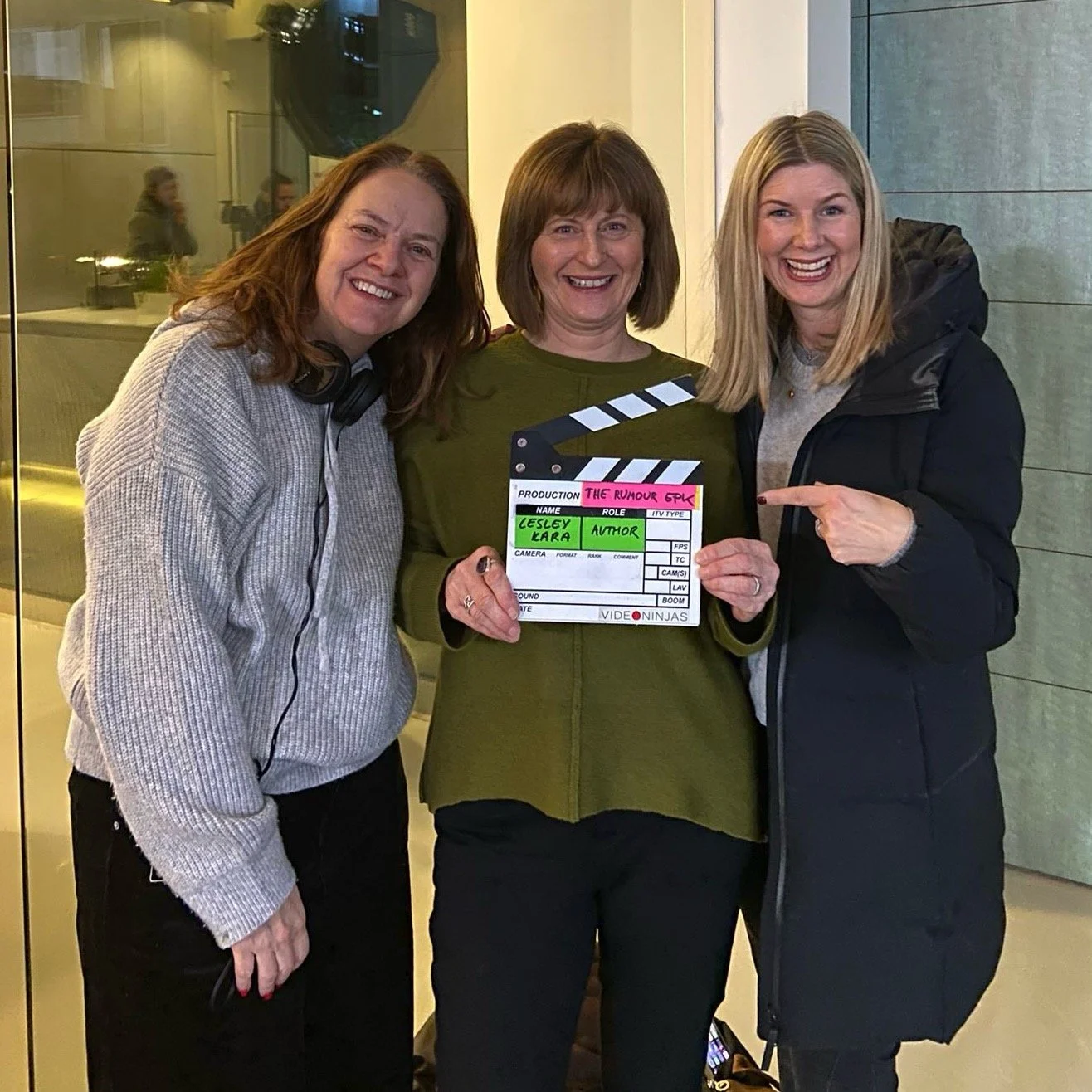 It really is every writer’s dream to have one of their books brought to the screen, so I’m absolutely THRILLED to share the amazing news that THE RUMOUR will be coming to Channel 5 in 2025 as a five-part series! I still can’t quite believe this is actually happening. Look at my excited face in this photo! On my left is Dixie Linder, one of the producers from Cuba Pictures and on the right is my agent, Amanda Preston. And yes, we were on location! Do read the full article on the banner at the top of this website for all the exciting details!